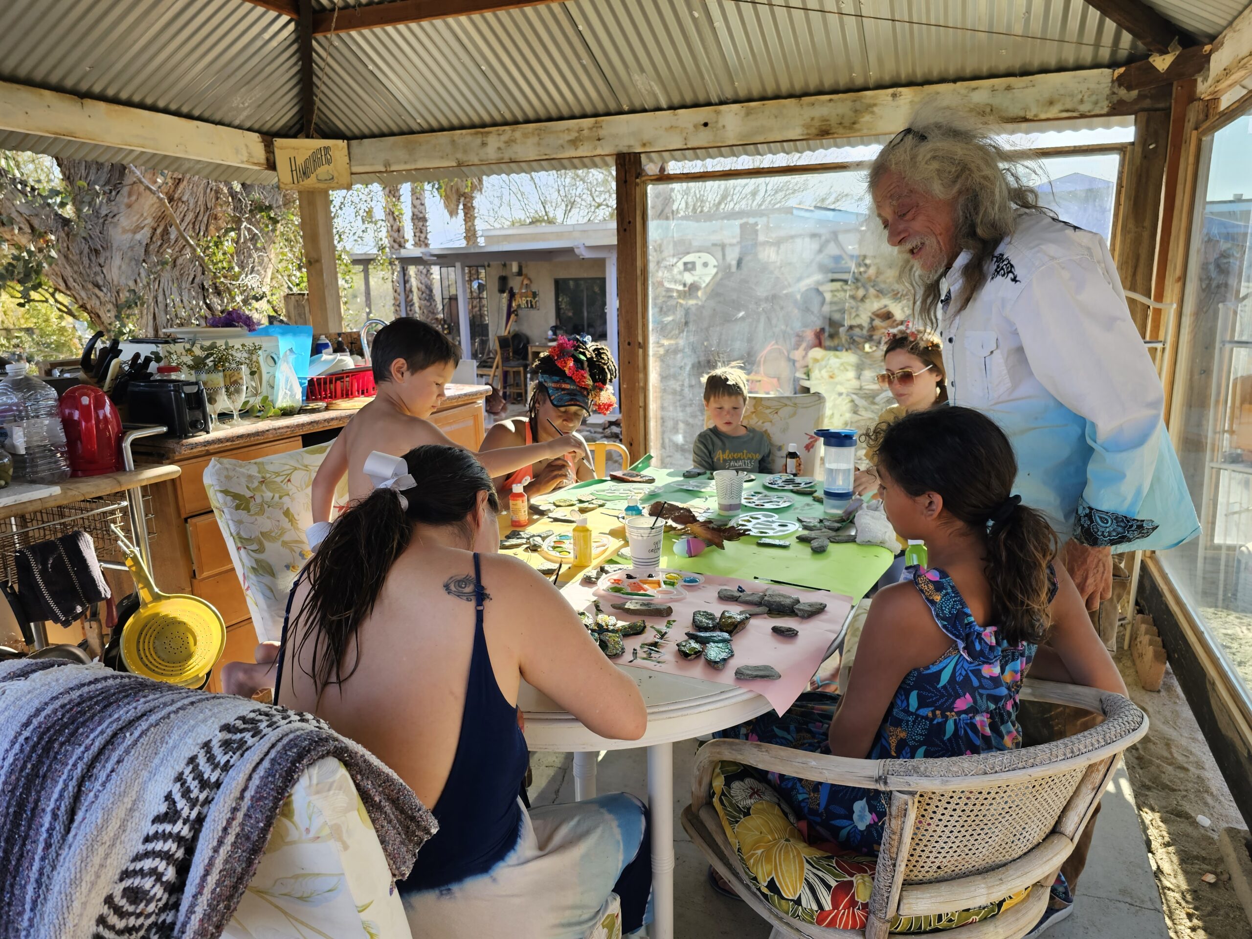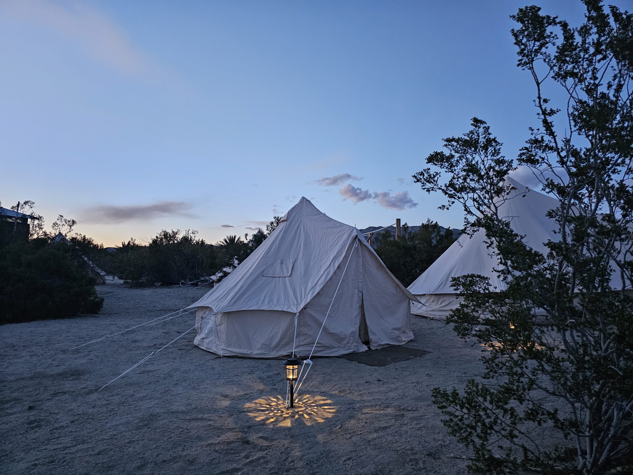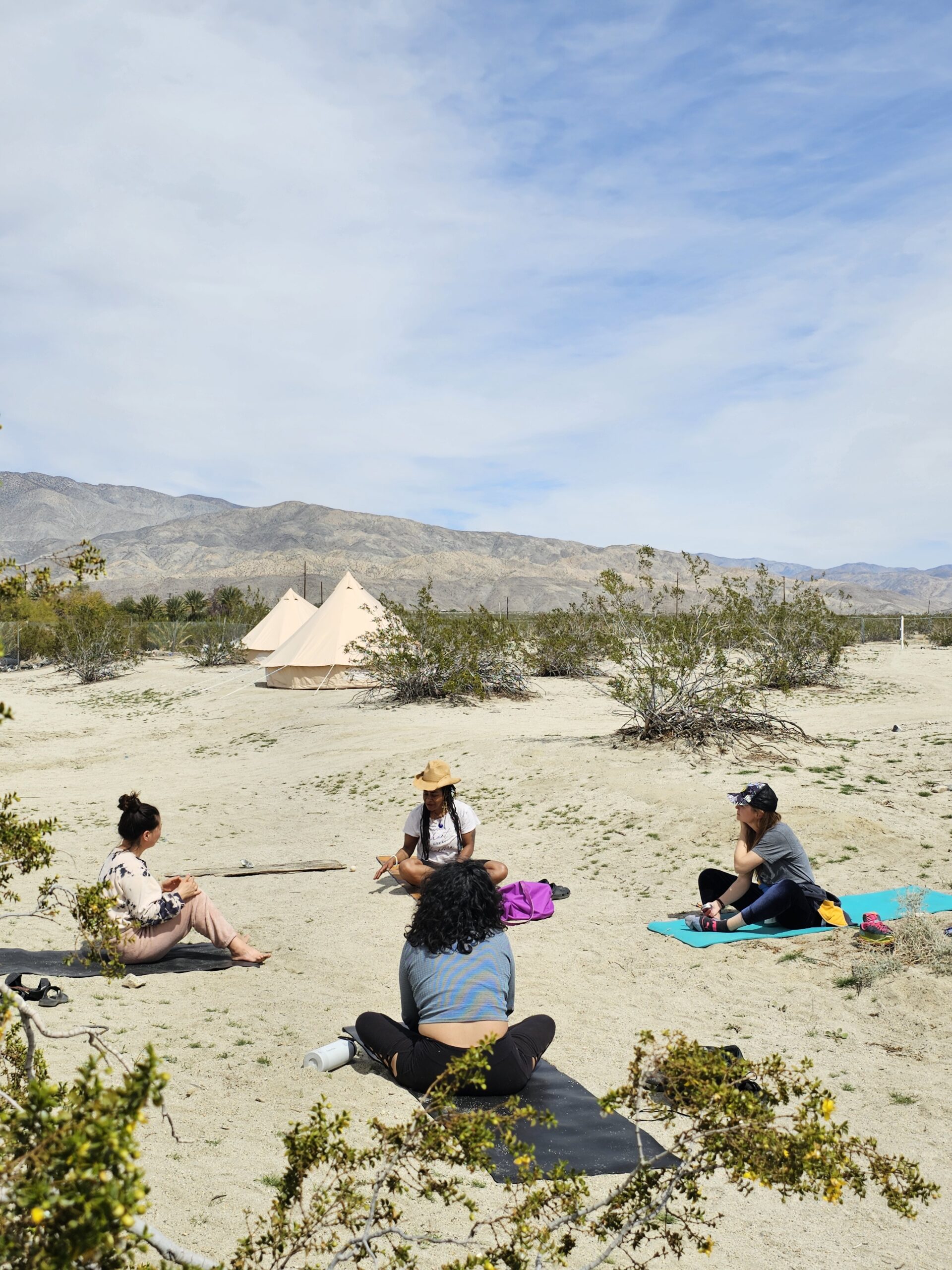 Activites included Yin yoga, rock painting, glam tents, plant walk at the Thousand Palms Nature Preserve, hot springs, intention setting, fire ceremony, and delicious high vibe food in a family environment.